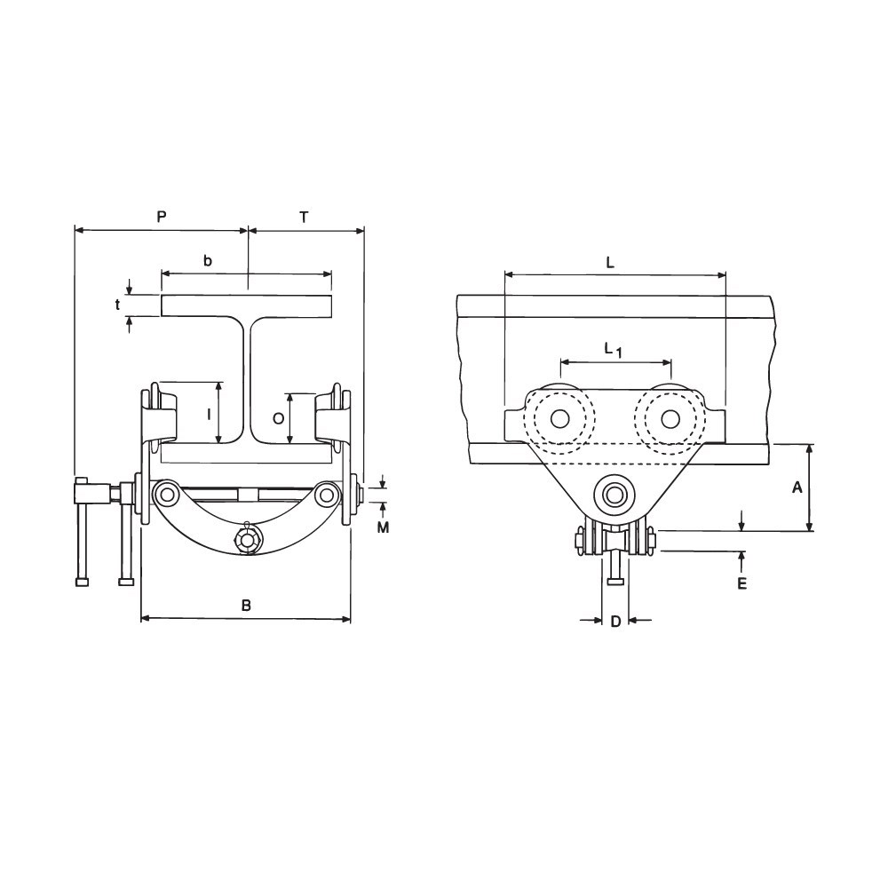 The Beaver integral push trolley and girder clamps are designed to provide a quick and easy attachment to overhead beams for transporting loads for permanent or temporary mounting in different locations. The integral clamp is adjustable to the beam width in the same manner as the YC model, by rotating the threaded spindle. All Beaver integral push trolley and girder clamps have an individual serial number stamped onthe body of the clamp, and also onto the aluminium identification plate, which is securely mounted to the trolley side plate. This number coincides directly to the test certificate of the product for quick and easy tracing. These clamps are also operationally tested to 150% of the rated campacity and come with indidivual test certificates.Features: